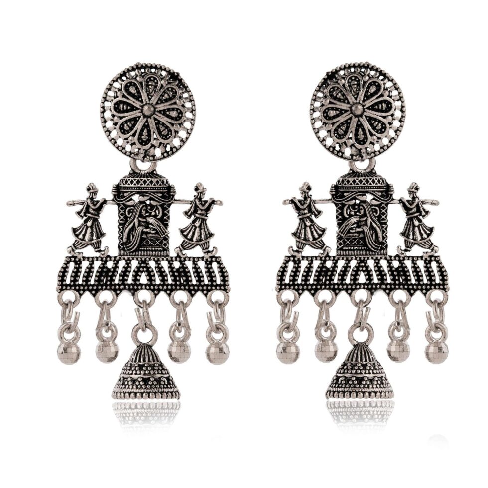 Women’s Indian Traditional AZ838-OXidised Silver Earrings For Women | Doli Wedding Theme Jumka Wedding Wear